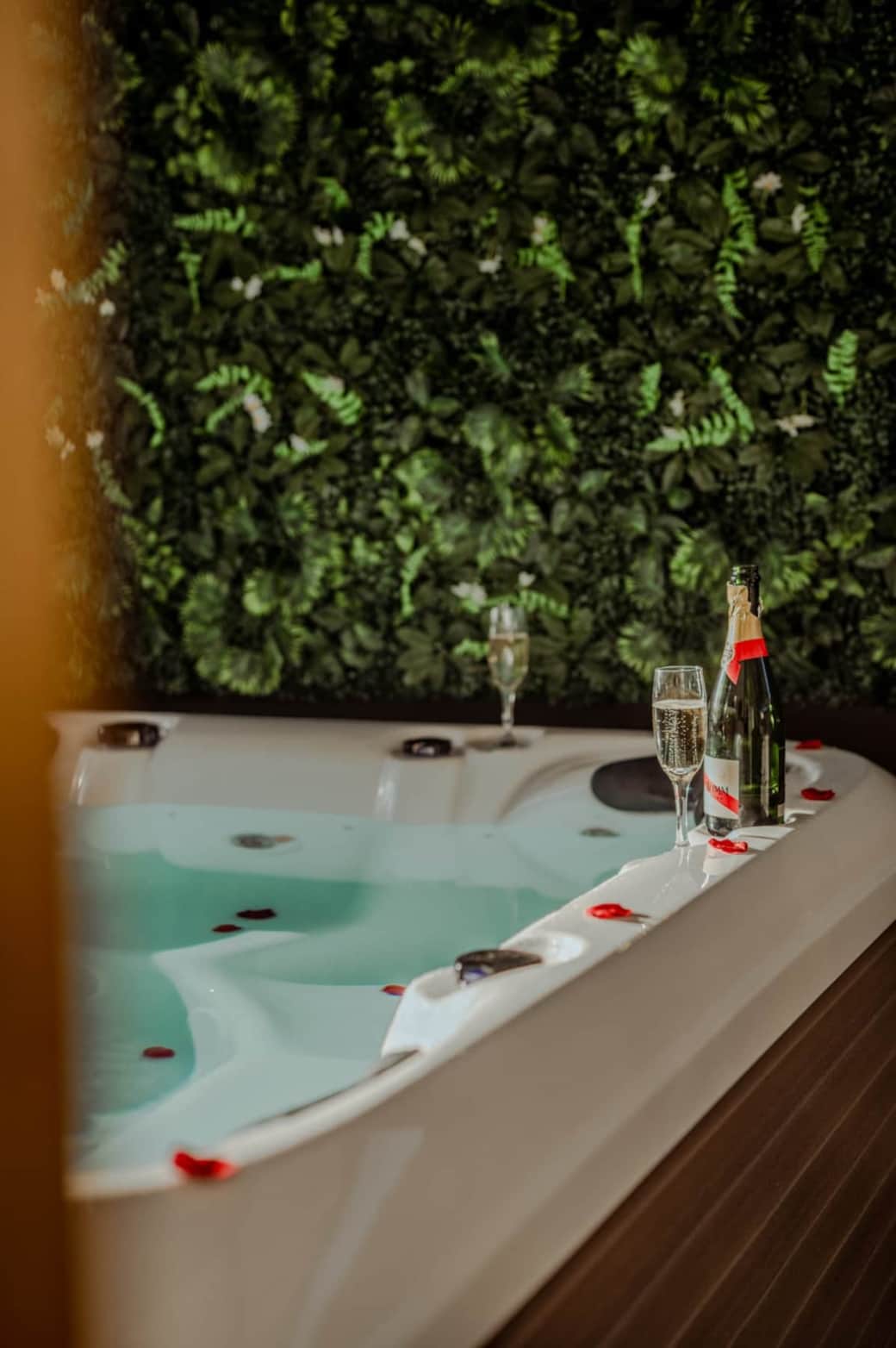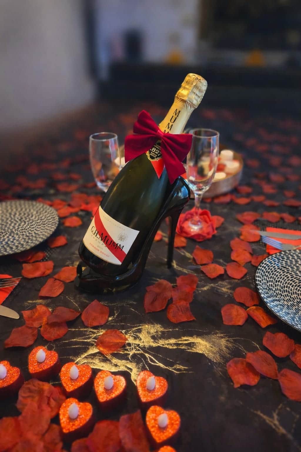 Offrez-vous une expérience unique avec bouteille de champagne et mise en scène romantique élégante, prête à votre arrivée.